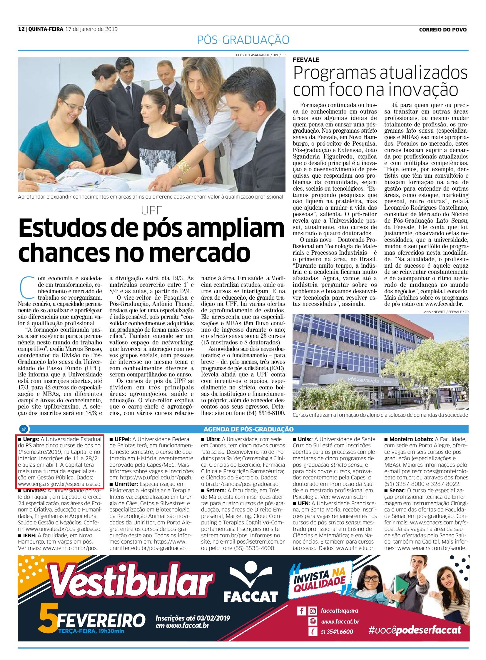 Uergs abre cinco cursos de pós-graduação no primeiro semestre -