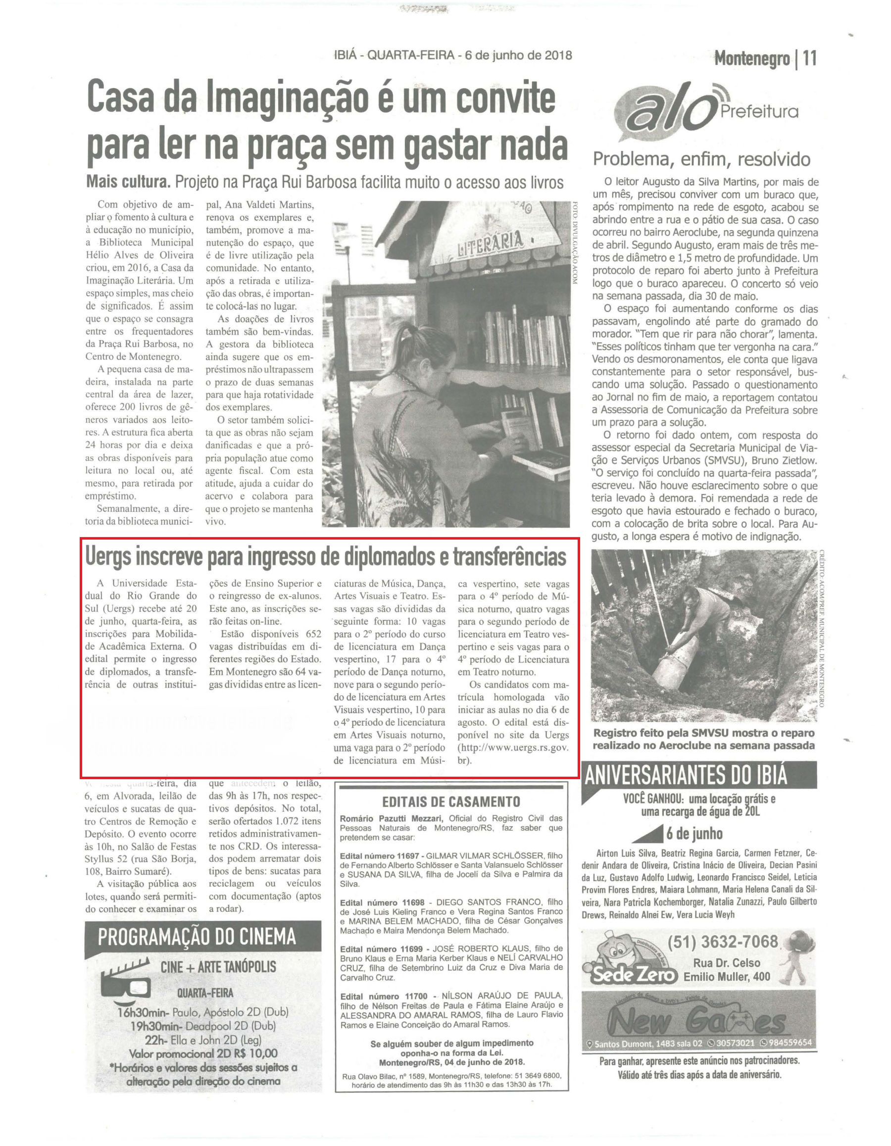 Matérias veiculadas em jornais impressos no mês de junho de 2018.