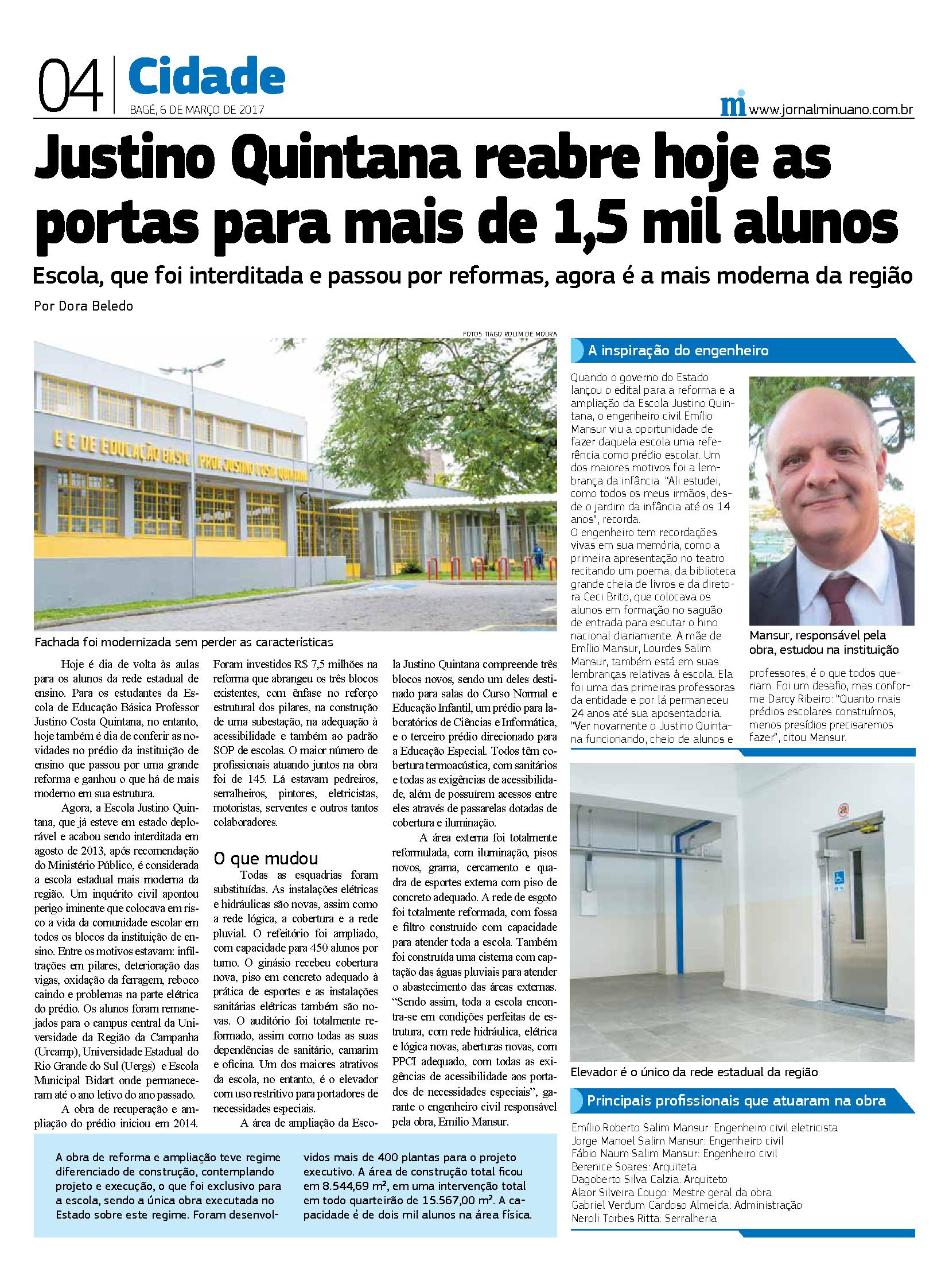 Justino Quintana reabre hoje as portas para mais de 1,5 mil alunos -