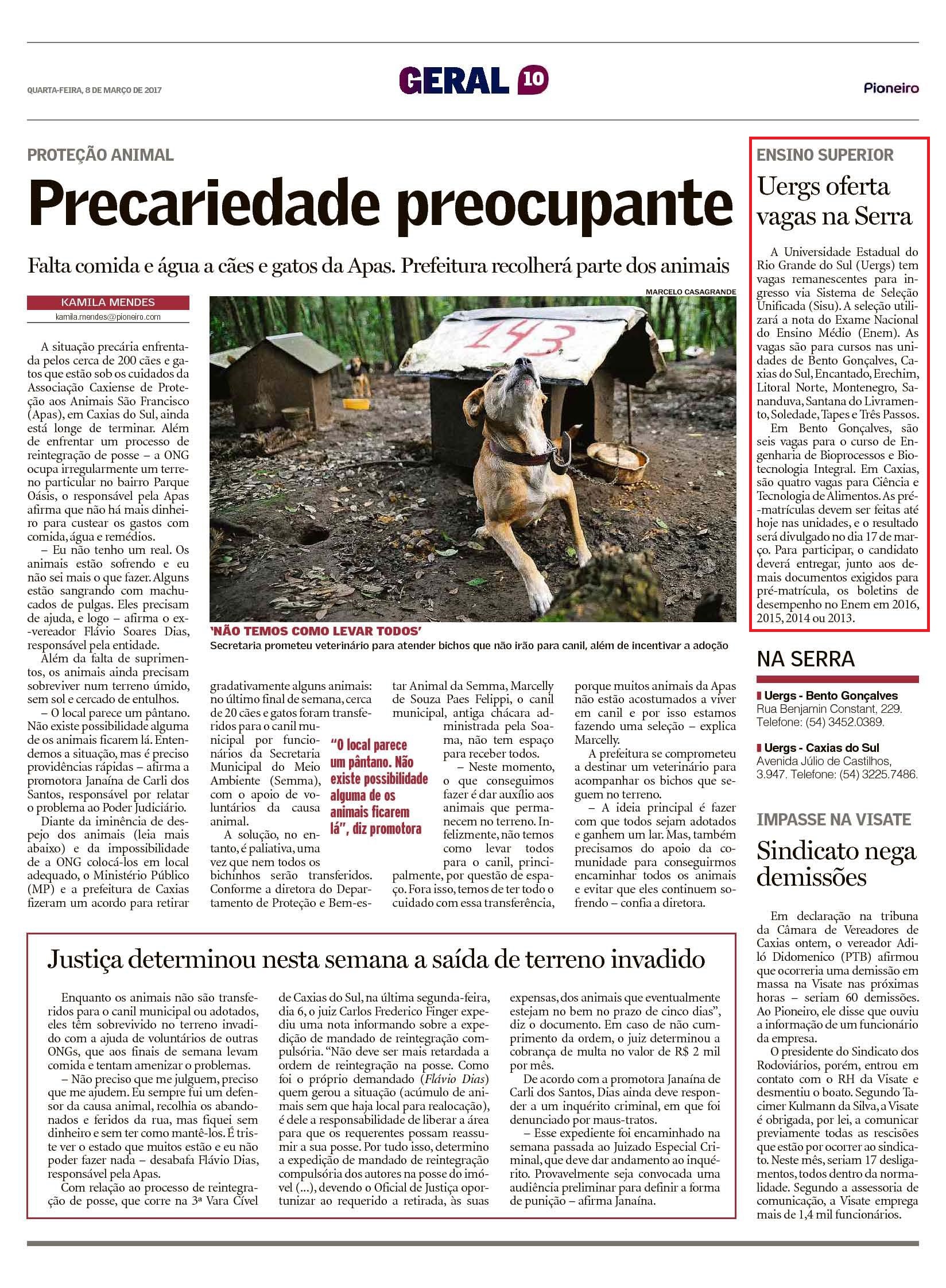 Matérias veiculadas em jornais impressos no mês de março de 2017.