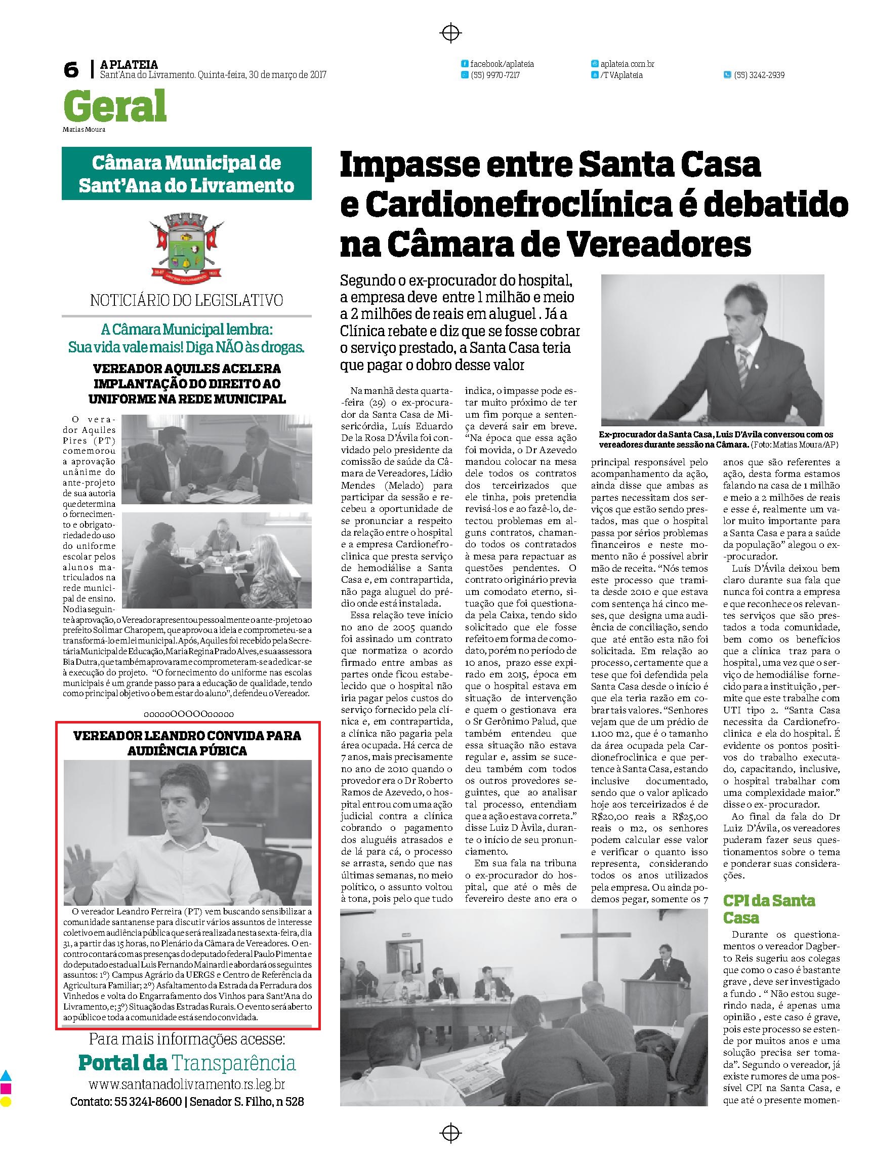 Vereador Leandro convida para audiência pública -