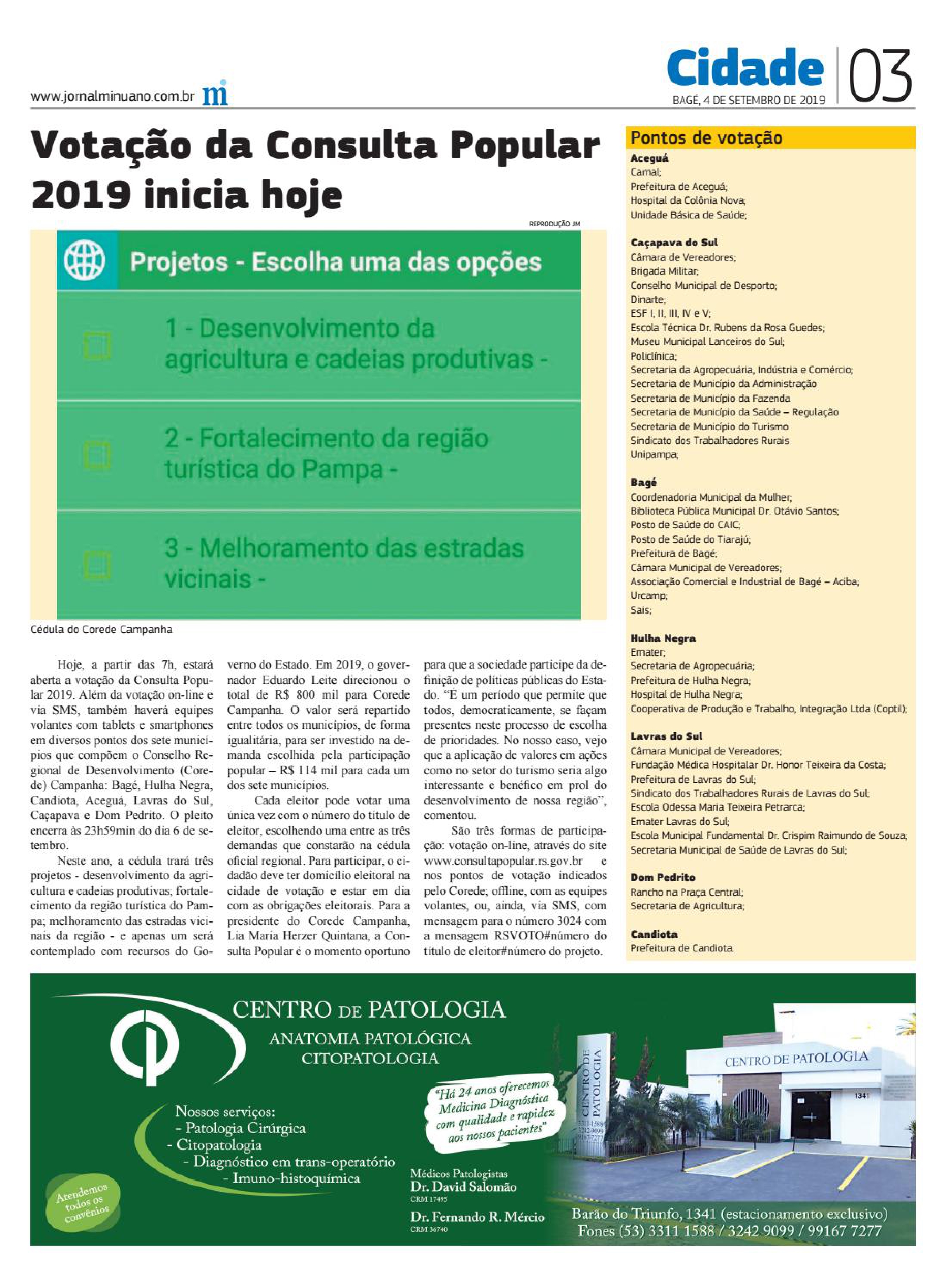 Votação da Consulta Popular 2019 inicia hoje -