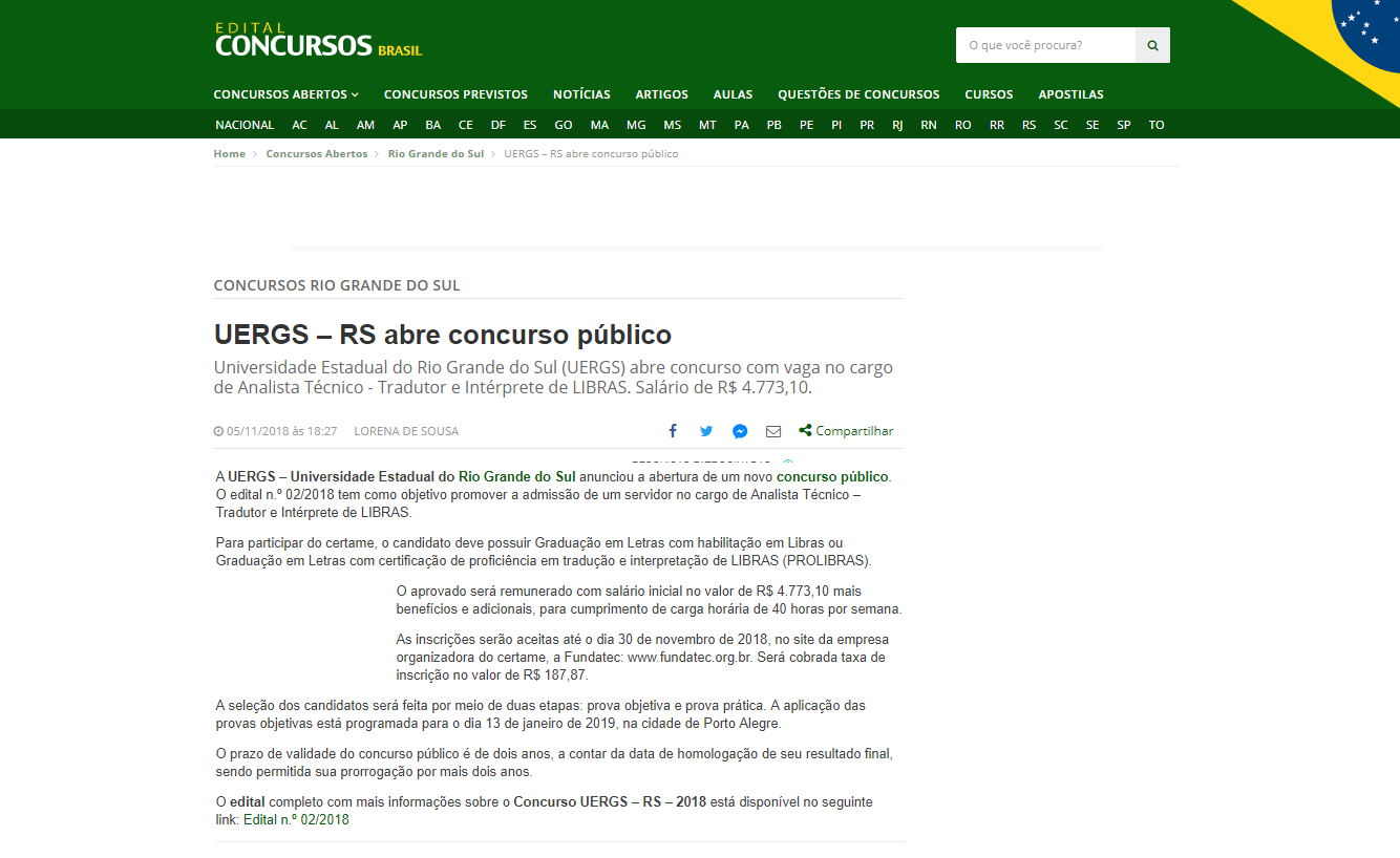 Uergs anuncia Concurso Público para Tradutor e Intérprete de Libras