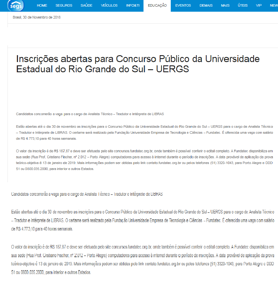 Uergs realiza concurso para tradutor e intérprete -